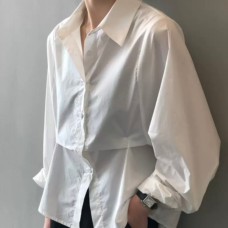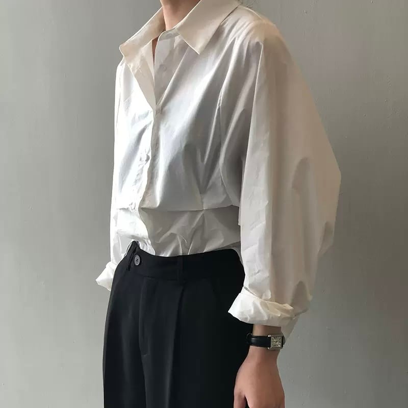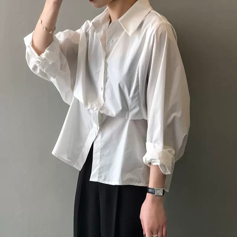 シンプルなデザインにタックをプラスした立体感のあるシャツ。
