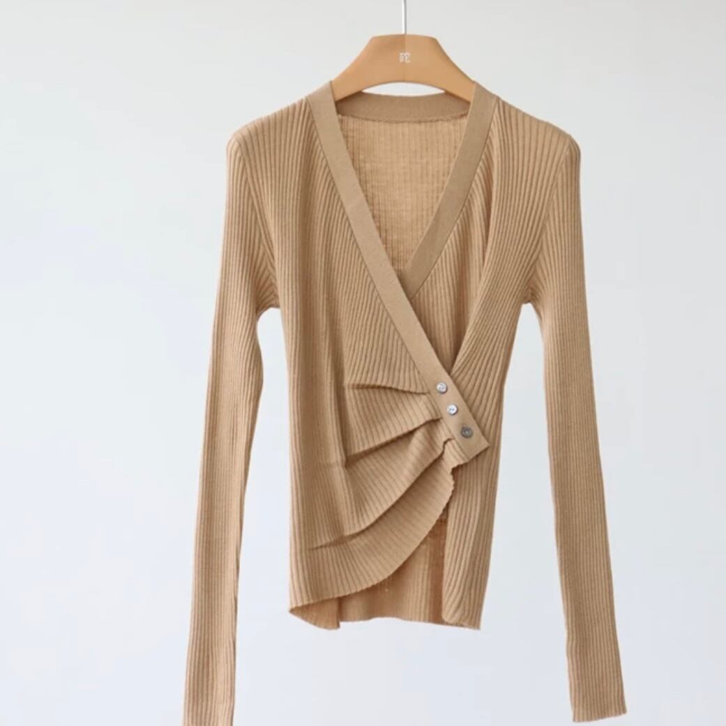 ラップスタイルのデザインリブニット。 Vネックと、タイトなシルエットで縦ラインを綺麗に魅せ、スキニーやタイトスカートなどと合わせれば更にスタイリッシュに。 ワイドパンツやAラインスカートともよく合います。 【サイズ】 F 肩幅34cm/胸囲80-106cm/袖丈62cm/着丈58cm 【カラー】 クリーム/ライトグリーン/カーキ/ホワイト/ベージュ/モカ/ブラック/チャコールグレー 【素材】 ポリエステル ▼お届けについて▼ こちらの商品は海外より直接発送となる為、ご入金から2~4週間前後で発送致します。 ※タイミングによっては 商品在庫切れにより注文キャンセルとさせていただく恐れもございますので、予めご了承くださいませ。 ▼注意事項▼ ・手作業による計測のため実際のサイズと1~3cm程度の誤差がある場合がございます。 ・こちらは海外製品のため縫製が甘いことやしわがついていることがありますが、重大な不良品に該当しない場合返品対象外となります。 ・仕入れ工場が変更になることがあるため、商品の使用が若干異なる場合がございます。 ・商品写真は照明やお使いのスクリーンの設定によって実物の素材感や色味とは違って見える場合がございます。 ・イメージ違いやサイズ交換等、お客様都合による返品・交換は原則承っておりません。 - - - - - - - - - - - - - - - - - - - - - - - - - - ご購入前にこちらをお読みください https://official.nubeige.com/about - - - - - - - - - - - - - - - - - - - - - - - - - - - - - - - - Nubeigeでは多数アイテムを取り揃えております。 新作商品など下記URLから是非ご覧ください♩ https://official.nubeige.com/ - - - - - - - - - - - - - - - - - - - - - - - - - - - - - - - - 人気商品はこちらのHOT ITEMをチェック https://official.nubeige.com/categories/4852325