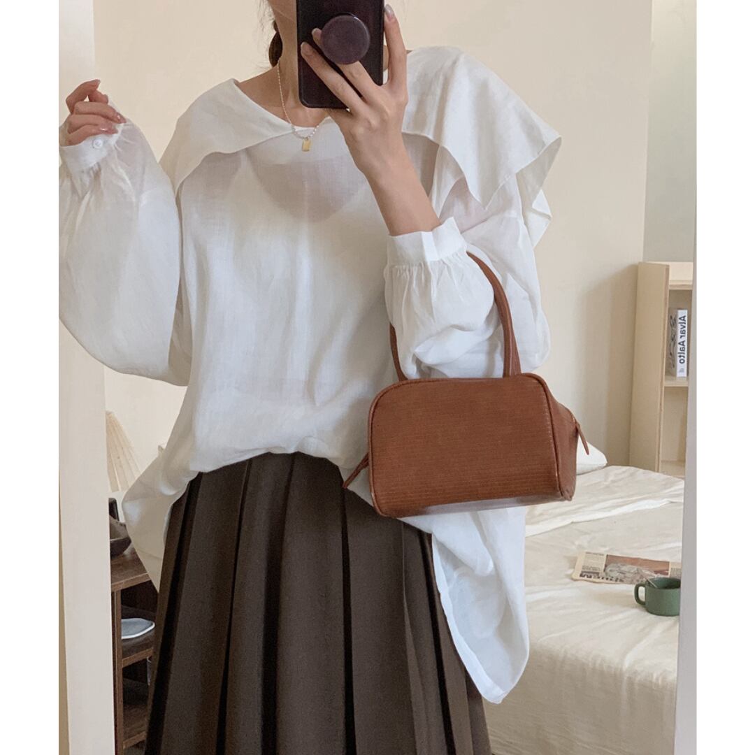 パンツやスカートと合わせるのはもちろん、サロペットやベスト等と合わせるのも襟をより強調してくれるのでオススメです。