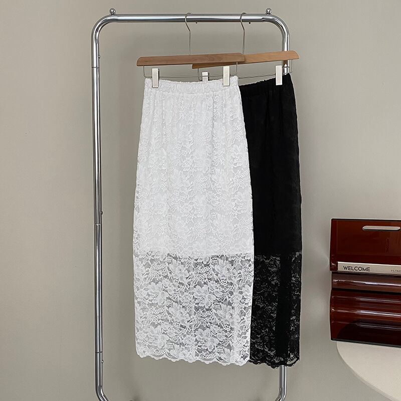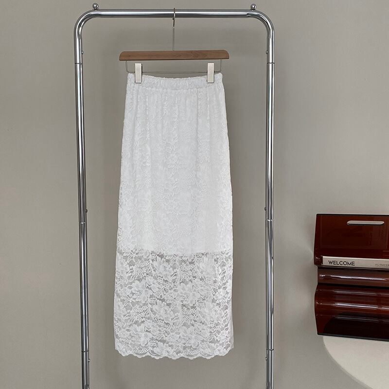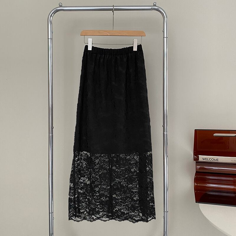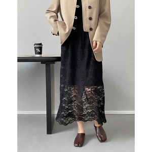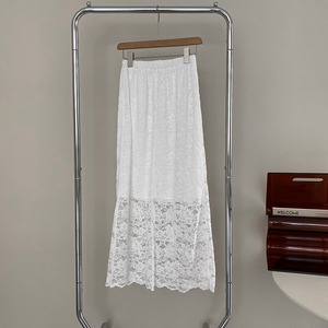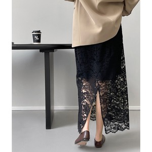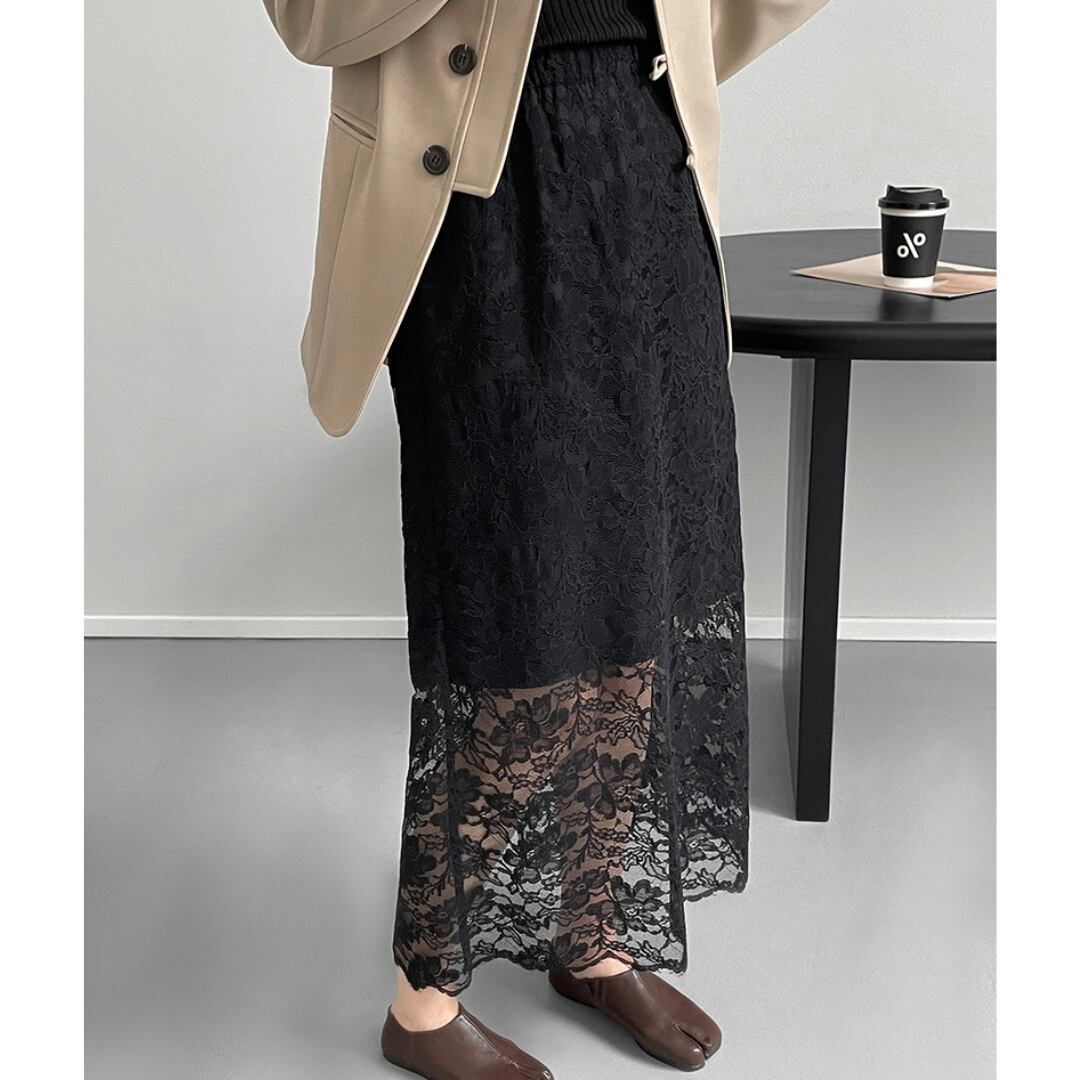 膝あたりからの透け感のあるレースデザインが品のあるスカート。