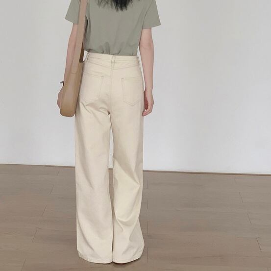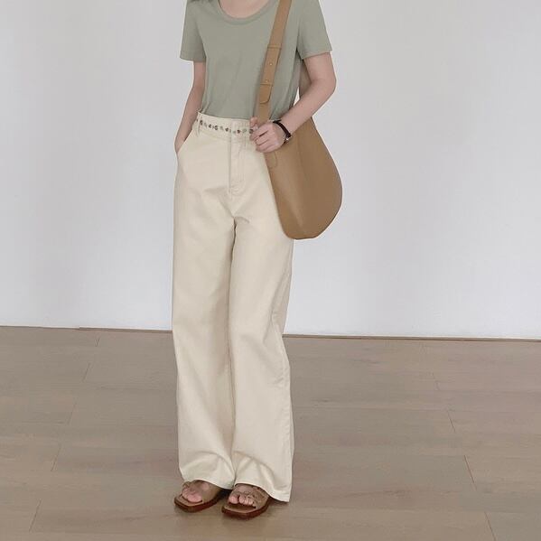 waist floral embroidery denim wide pants N20450